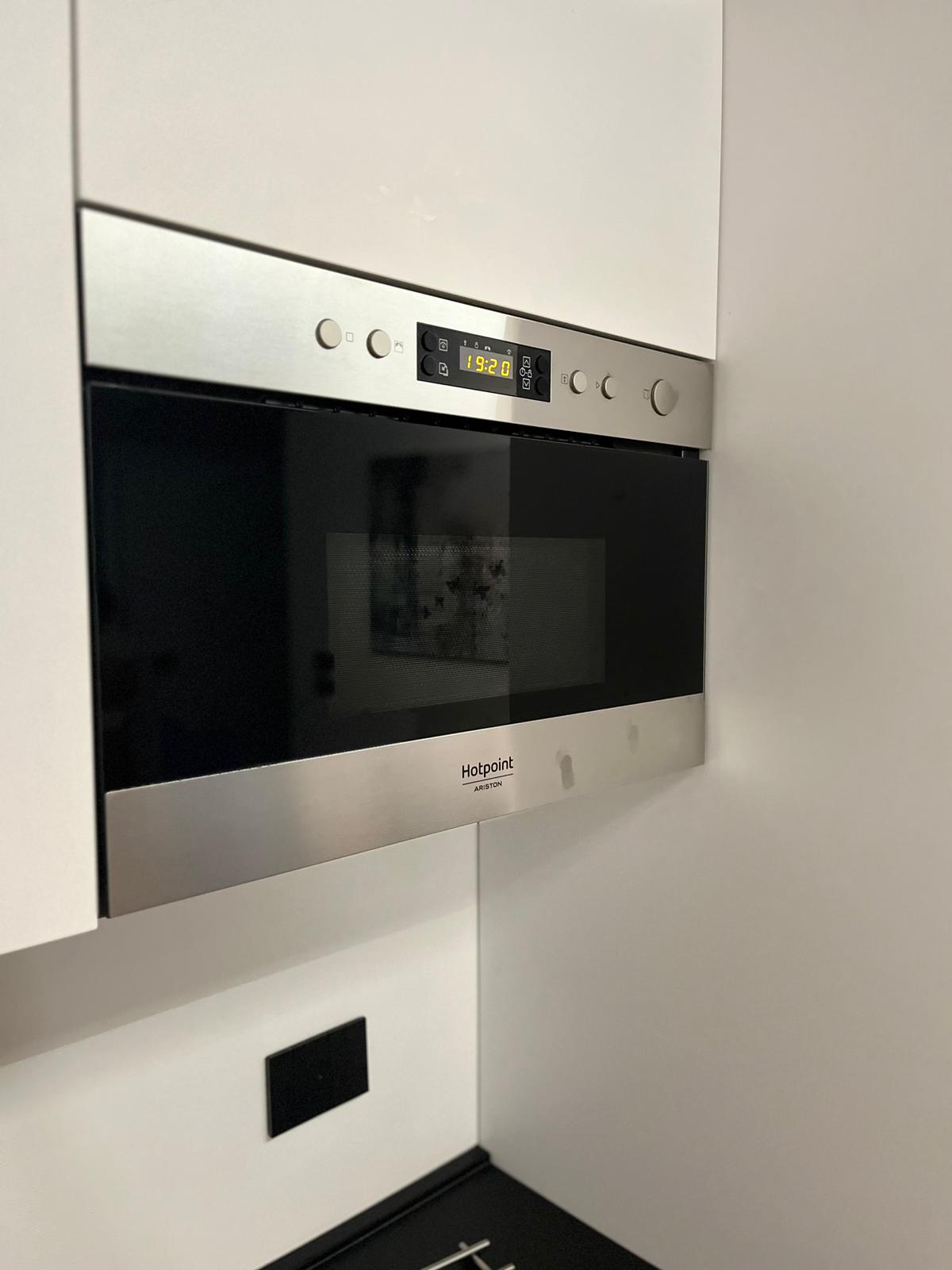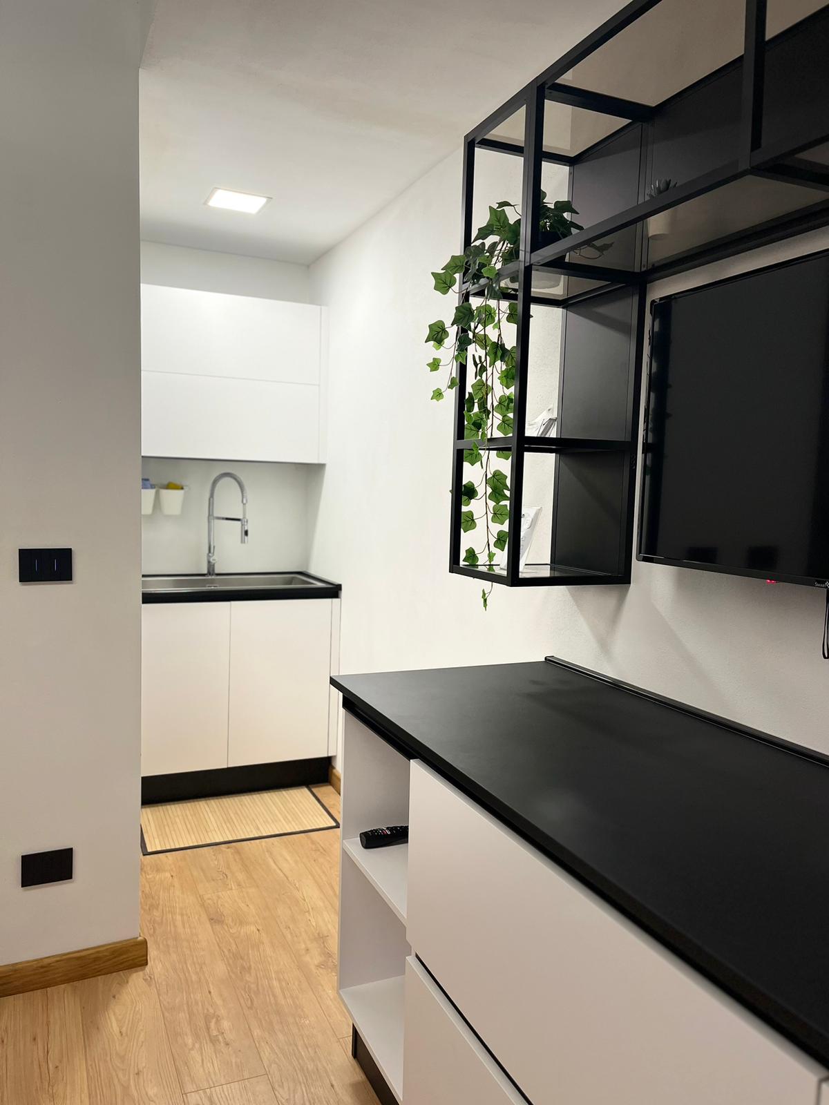 La zona giorno dispone di una cucina completamente attrezzata con elettrodomestici moderni, tra cui microonde, forno, piano cottura a induzione, lavatrice, lavastoviglie, frigorifero, ferro e asse da stiro. C’è anche un comodo divano letto per eventuali ospiti aggiuntivi.