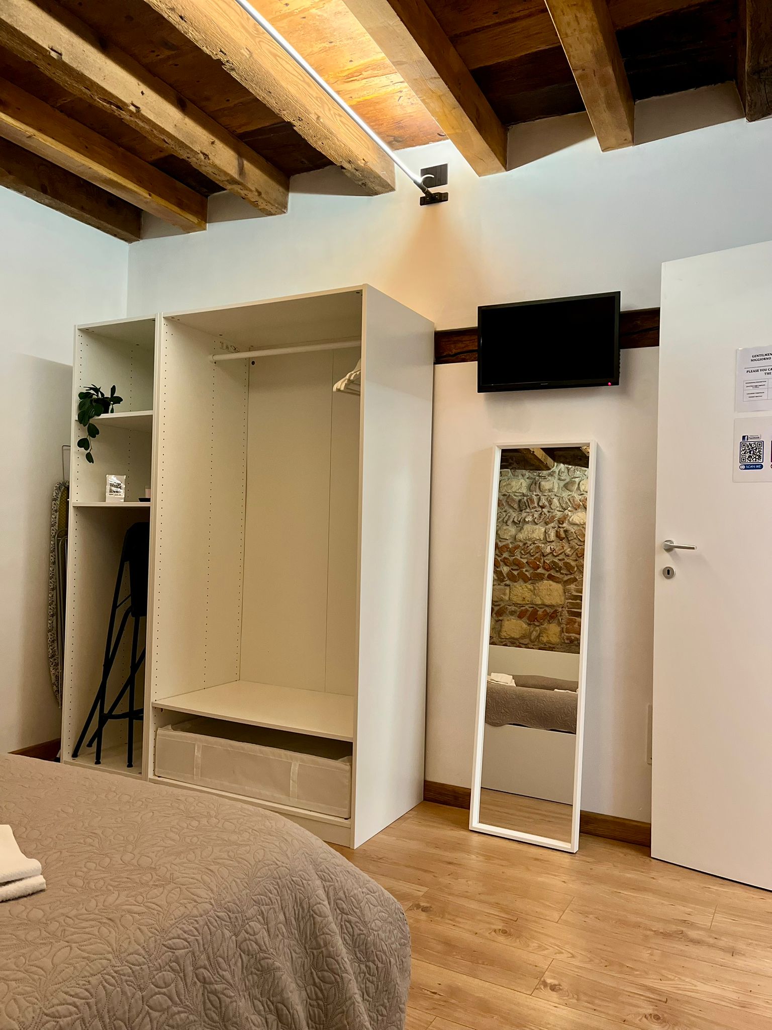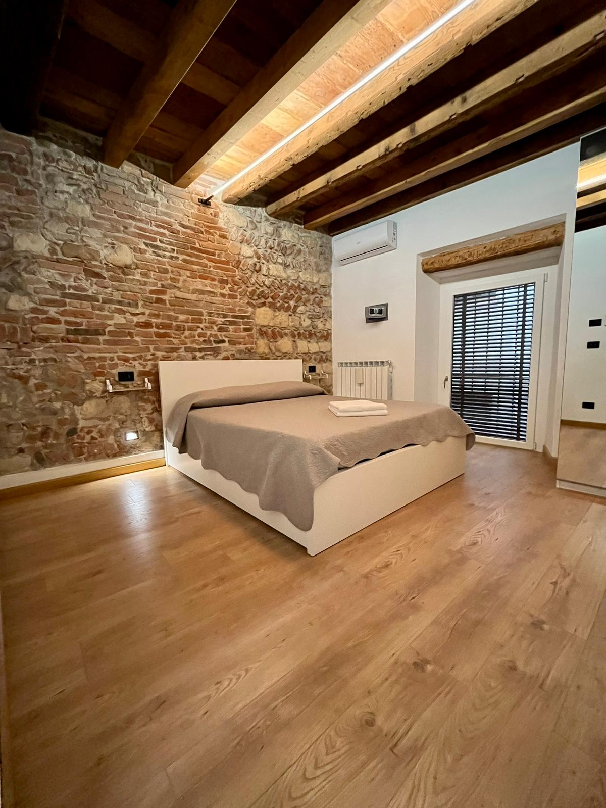 Prestigioso appartamento recentemente ristrutturato, posto al primo piano. Arredato in stile moderno all’interno di un ambiente antico ma originale, valorizzato da colori caldi, soffitti in legno e travi a vista, che lo rendono una struttura davvero accogliente ed unica.